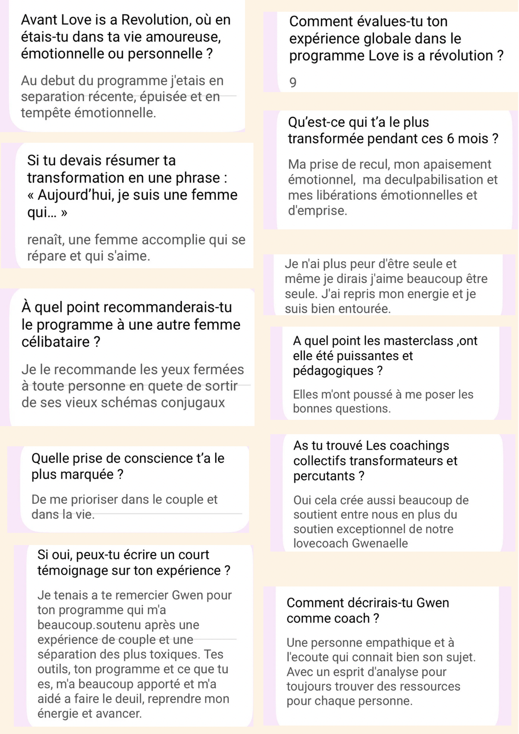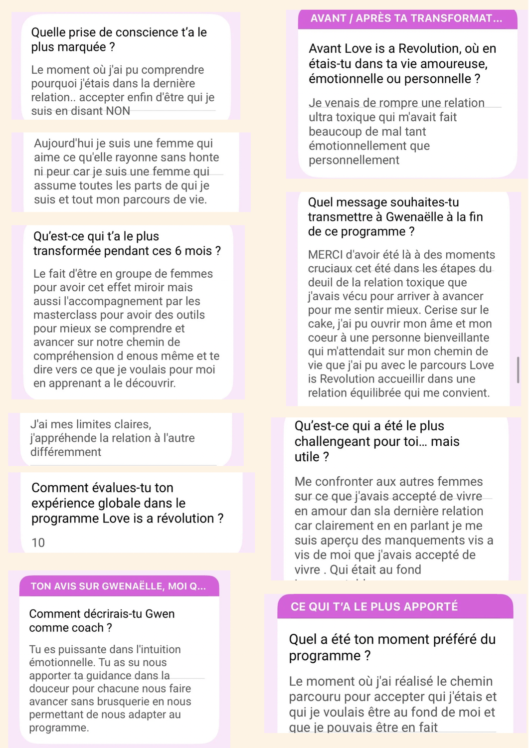 Love is a révolution, ce n’est pas juste du contenu ou des visios. C’est un vrai Cercle d'évolution, de révèlation, une expérience humaine où tu te sens vue, soutenue et inspirée.